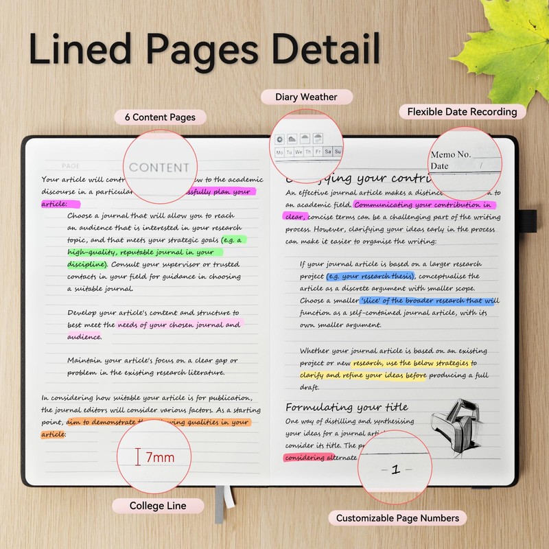 • 【366 Pages/183 Sheets】:This B5 notebook,with a 7mm spacing,is a classic university standard notebook that provides ample writing space for you. Multiple colors to meet your needs in various occasions. Each journal notebook comes with colored index stickers for easy categorization and organization of content.