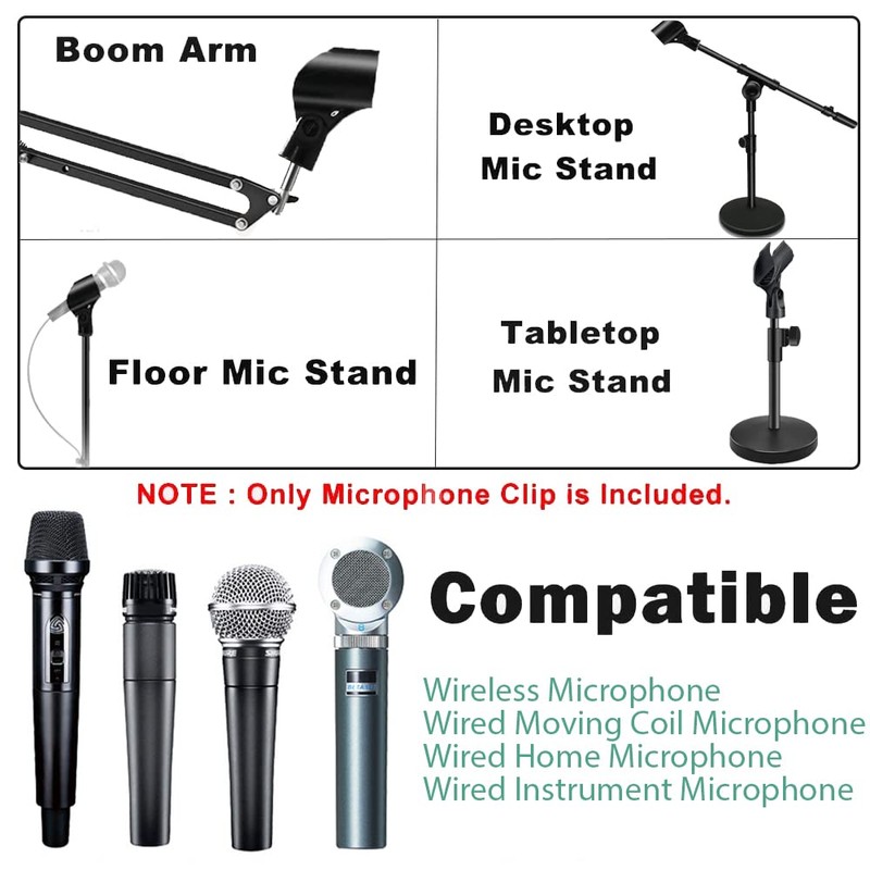 • Universal: A high quality universal flexible Large Microphone Clips that can be used as a replacement for a variety of floor and desktop Mic Clip Holder