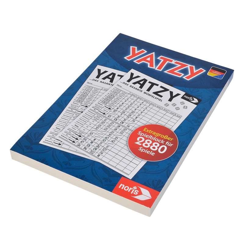 Noris 606194320 – Yatzy Spielblock im Maxi Format 14,5 x 20,7 cm – Extragroßer Yatzyblock für 2.880 Spiele, Für 2 Spieler im Alter ab 6 Jahren