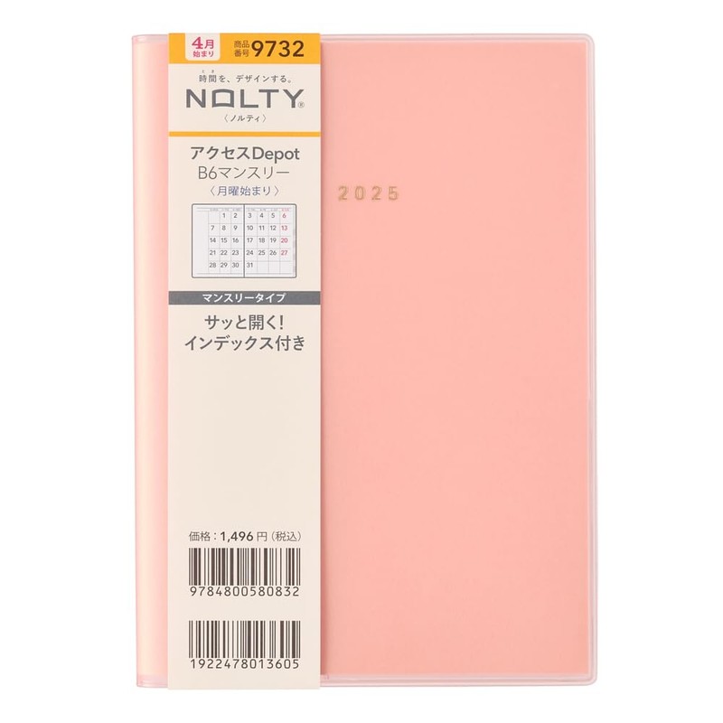 Noritsu NOLTY 9732 Notebook, Begins in April 2025, B6, Monthly Access, Depot, Begins on Monday, Pink