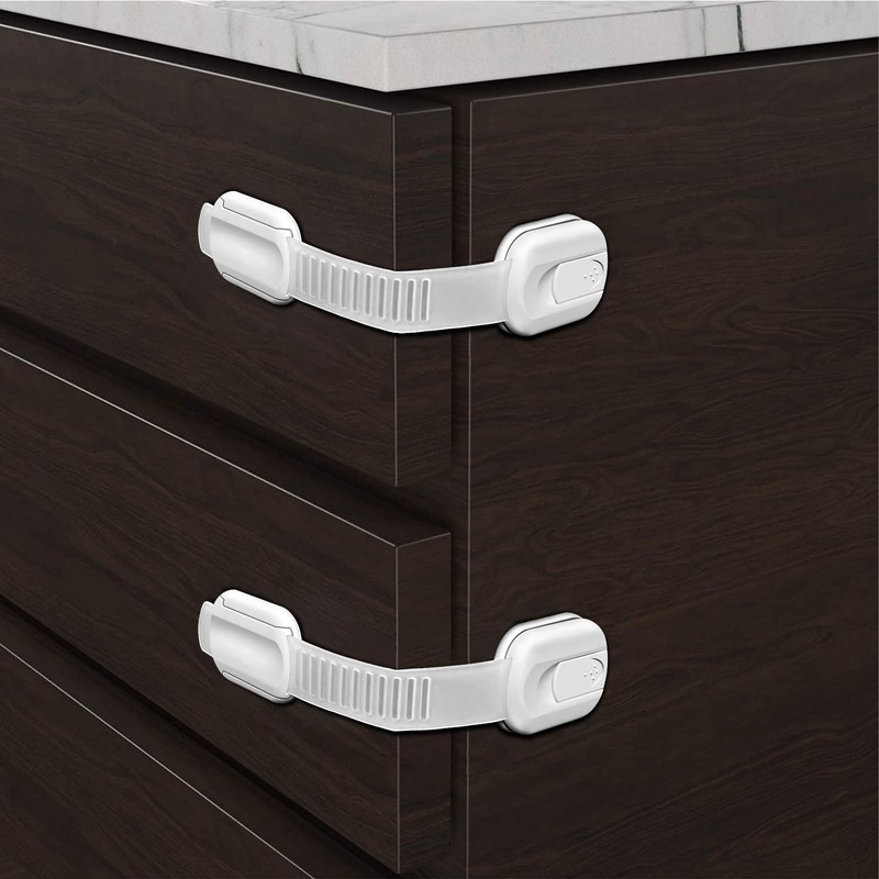 - Flexible soft strap – the multi-purpose latch can not only be used on flat places but also bend around corners and offers flexibility with its soft strap. Reliably secures cabinet, refrigerator, ovens, toilet, door, window, dresser, stove, washing machine, dryer, trash can, etc.
