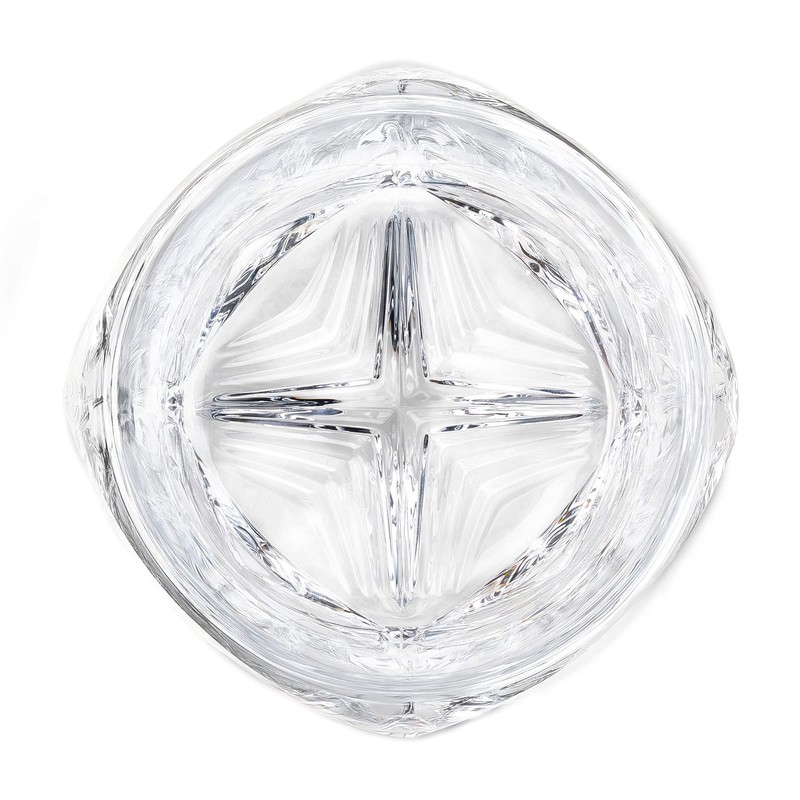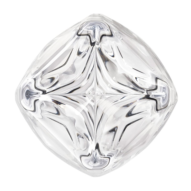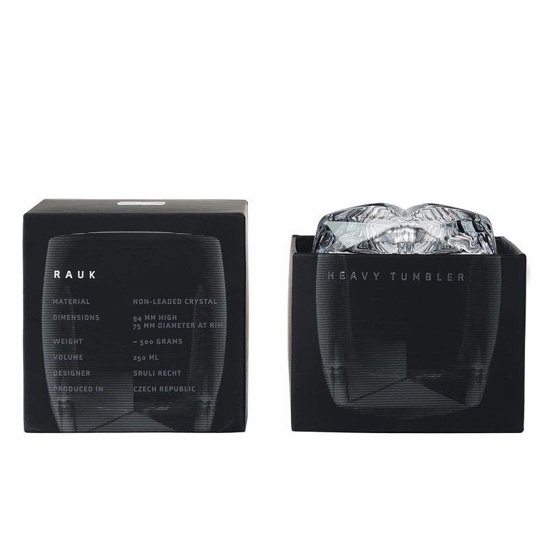 The Rauk Heavy Tumbler is the meeting point of advanced digital design, inventive production techniques and the intimate whisky ritual. The glass has been developed for whisky drinkers who prefer their spirit chilled, whether with an ice sphere or simply on the rocks. And for those who revel in the crafted cocktail, the tumbler features a core innovation. Inside the glass lies an array of extruded chevrons radiating from the center, which serve to provide friction points for gripping ingredients used in muddled drinks. Circumventing the ornamentation of traditional cut crystal, the entire surface of the tumbler, inside and out, is born in a single blinding moment of machine-pressing the molten crystal into a complex five-part mold. The result is a pure expression of material and form that somehow feels not of this time, with geometric facets and edges blending organically into curved surfaces that fascinate the eyes and play with the sense of touch.