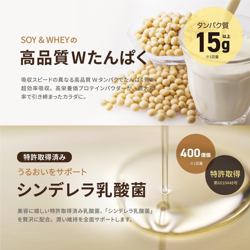 - ✅【 ソイ & ホエイ の高品質W たんぱく 】 吸収スピードの異なる高品質W プロテイン で たんぱく質 を超効率吸収。高栄養価 プロテイン パウダーが、最大効率で引き締まった身体に。さらに、 低カロリー ・ 低糖質 ・ 低脂質 だからこそ、 置き換えダイエット にも最適です。