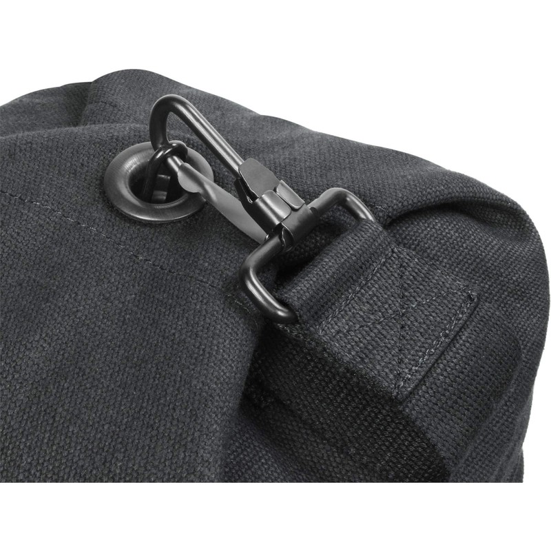 The extremely durable canvas material is made of pure cotton. The weft thread is woven alternately in front of and behind a warp thread, making canvas a firm and very durable fabric. The duffel bag can withstand a large load weight.