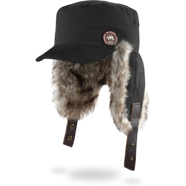 normani Winter Hat Winter Cap with Faux Fur and Ear Flaps - Warm Inner Padding, Windproof and Peak for Men and Women, black