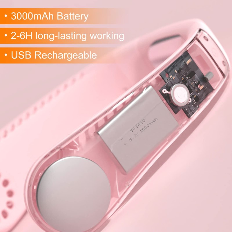 - [3 Wind Speeds & Long Battery Life] The neck cooling fan has 3 wind speeds for choice (soft/ medium/ high), you can choose the level according to your requirements. 3000mAh Large capacity battery last 2-6 hours working (depend on different speed), usb rechargeable easily charged by laptop, pc, adapter.