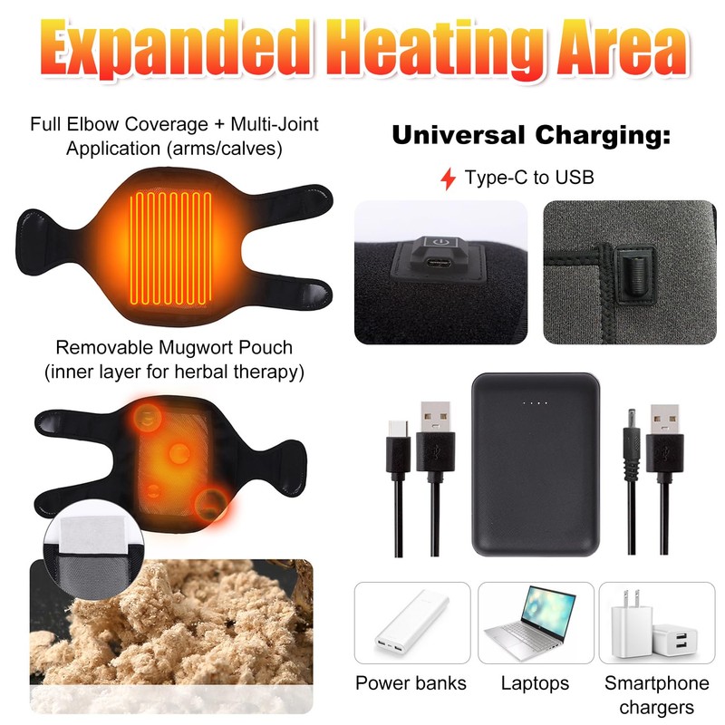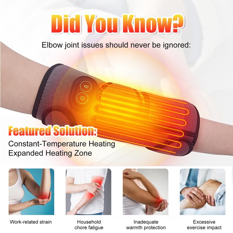 - 【Heat Therapy】 This elbow heating pad delivers targeted heat therapy to relieve pain, swelling, and stiffness. It is especially effective for conditions such as tendinitis, arthritis, tennis elbow, and injury recovery