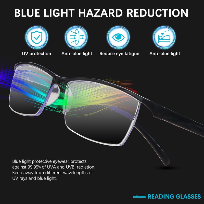 - ANTI BLUE LIGHT MENS READING GLASSES : Upgrade your screen time with this stylish 3 pack of blue light reading glasses. With a pair for every place you relax, you can protect your eyes and maintain a polished look wherever you go