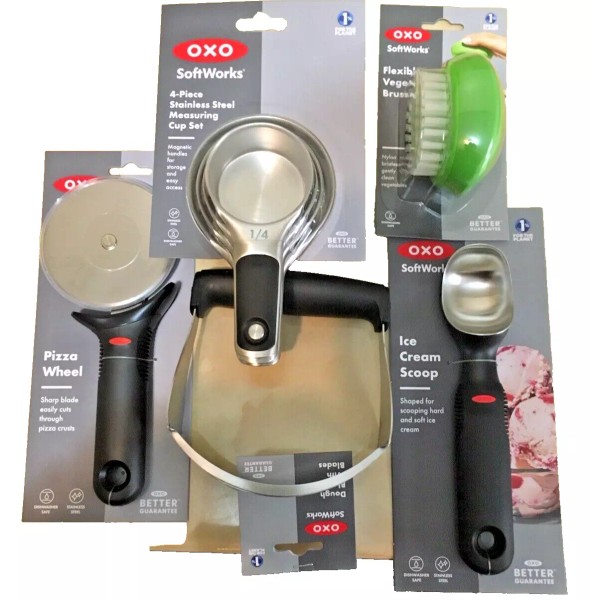 Norpro New 5-pack LOT OXO Measuring Cups-IceCream Scoop-Pizza Cutter-Masher-