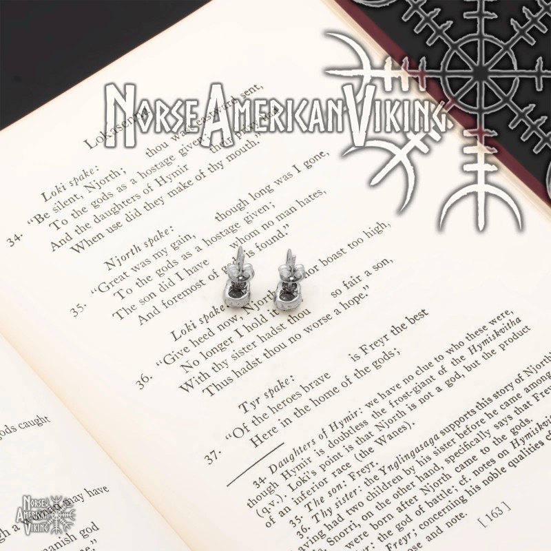 These Viking stud earrings feature tiny Raven skulls in solid 316L stainless steel.