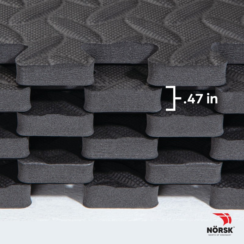 Norsk Foam Floor Gym Mats with Interlocking Tiles, .47" Thick, 24"x24", 24-Pack, 96 Square Feet, Diamond Plate Design, Grey