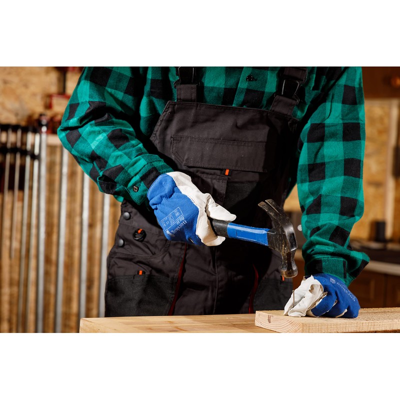 • Assembly gloves reinforced with goat leather. Leather tanned so that the inside is comfortable and soft - velvety and smooth on the outside. The gloves can be used in many industries - they are ideal for assembly, loading, warehouse, gardening, mechanics and packaging work