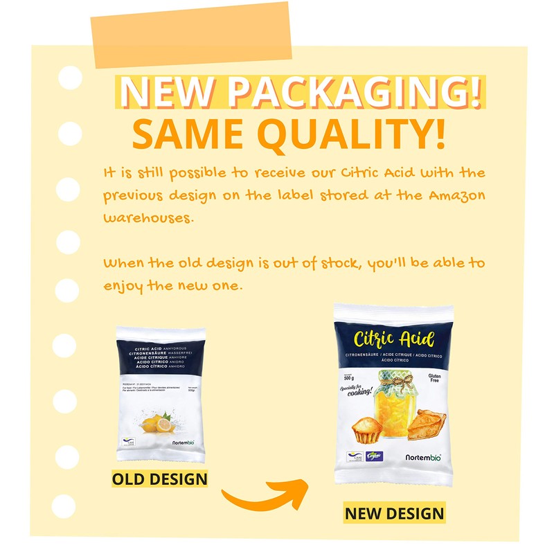 - 🎁 Free e-book (English language not guaranteed). In the first week after purchase, you will receive an email to receive our e-book with all the uses of Nortembio citric acid as well as delicious and simple recipes for the whole family. If you do not receive the download instructions, please contact us via the email address you find on our product label.