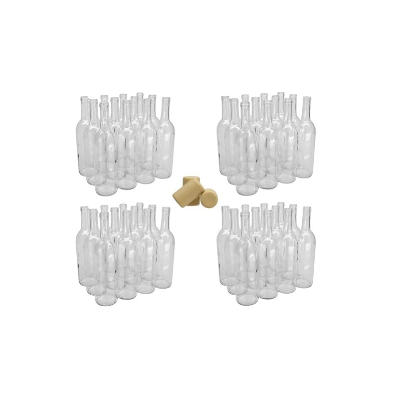 - North Mountain Supply 750ml Glass Bordeaux Wine Bottle Flat-Bottomed Cork Finish - With Premium Synthetic Century Cork - 48 Bottles (4 Cases of 12) - Clear/Flint