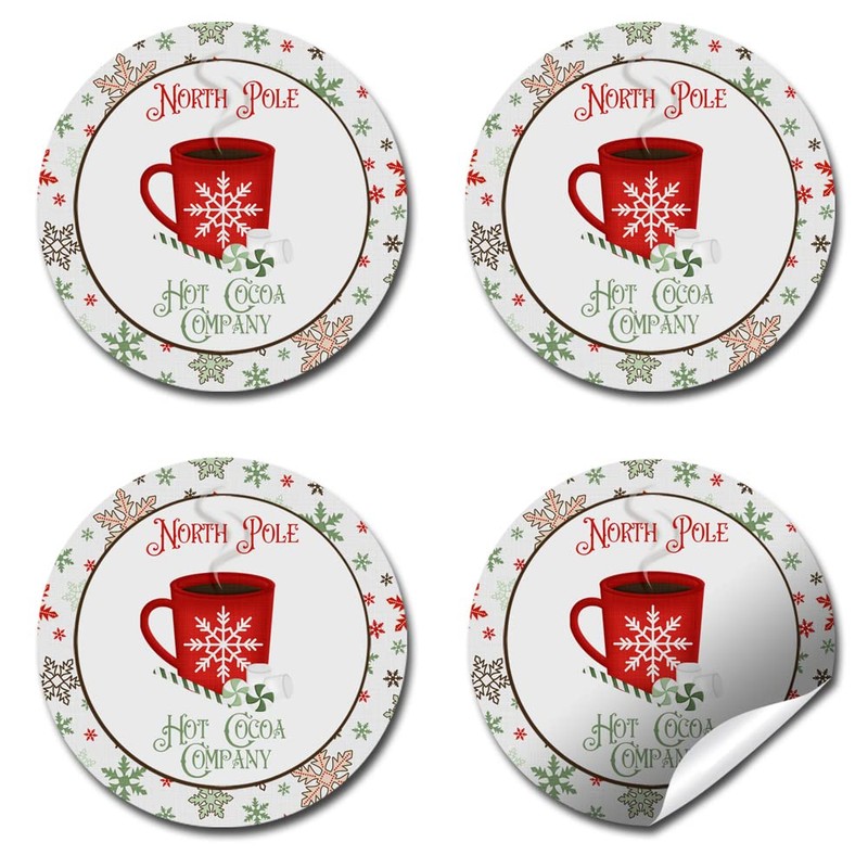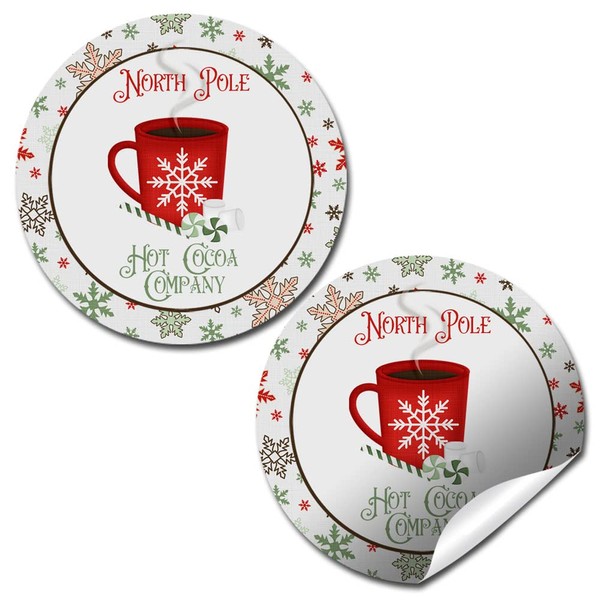 - Awesome Quality: Forget smaller, chintzier labels printed on flimsy paper. At 2 inches your North Pole Hot Cocoa Stickers are bigger & sturdier than most. Plus, they're printed on 60# stock for ultra-quality.