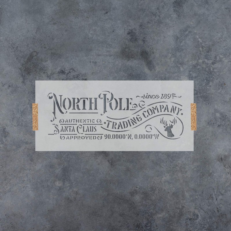 North Pole Trading Stencil - Reusable Stencils for Painting - Create DIY North Pole Trading Home Decor