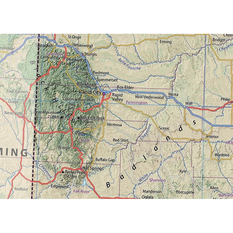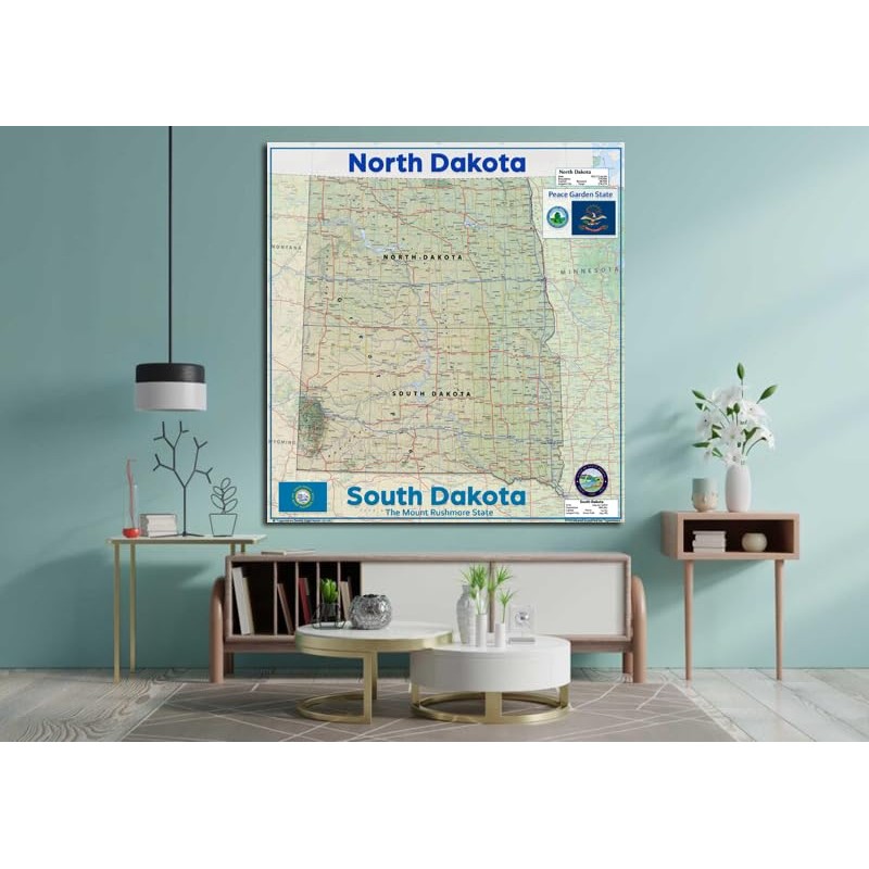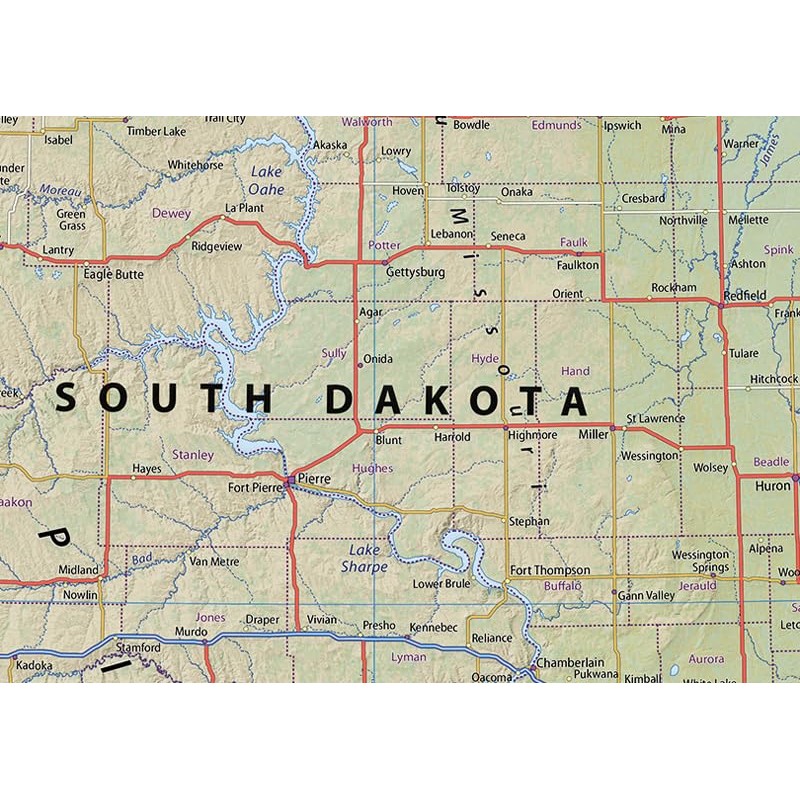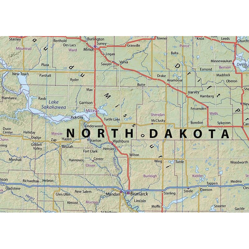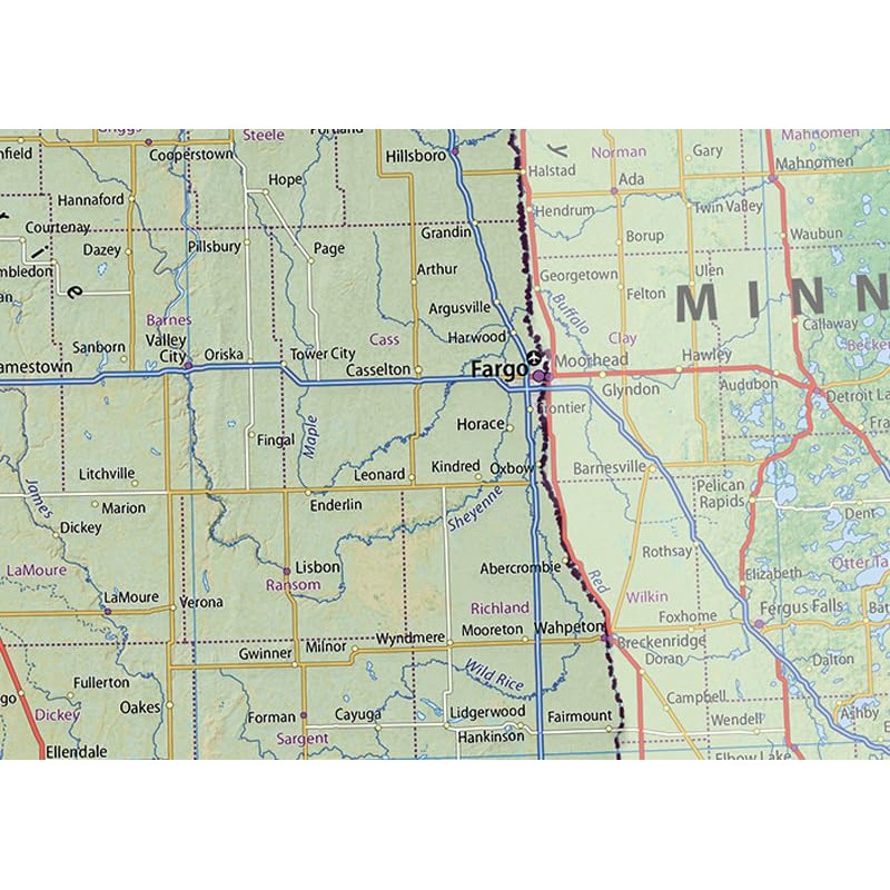 North & South Dakota Physical Map - 16.5 x 17.5 Inches - Paper Laminated