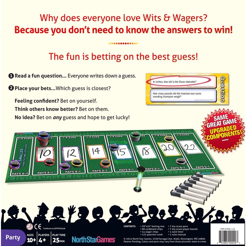 Wits & Wagers Deluxe Board Game by North Star Games - Award Winning Trivia Game - 4+ Players - Ultimate Party Game for Family, Teens and Adults.