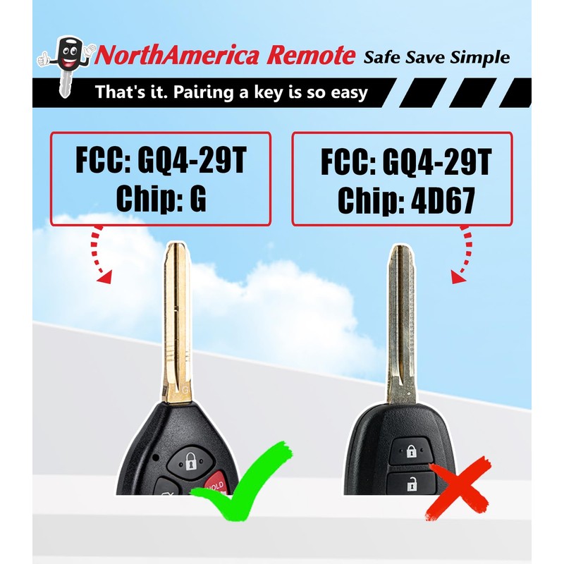 NorthAmerica Remote DIY Tool with Keyfob, Simple car Key fob Replacement for 2009-2016 Toyota Venza 2010-2013 Corolla GQ4-31T with G Chip