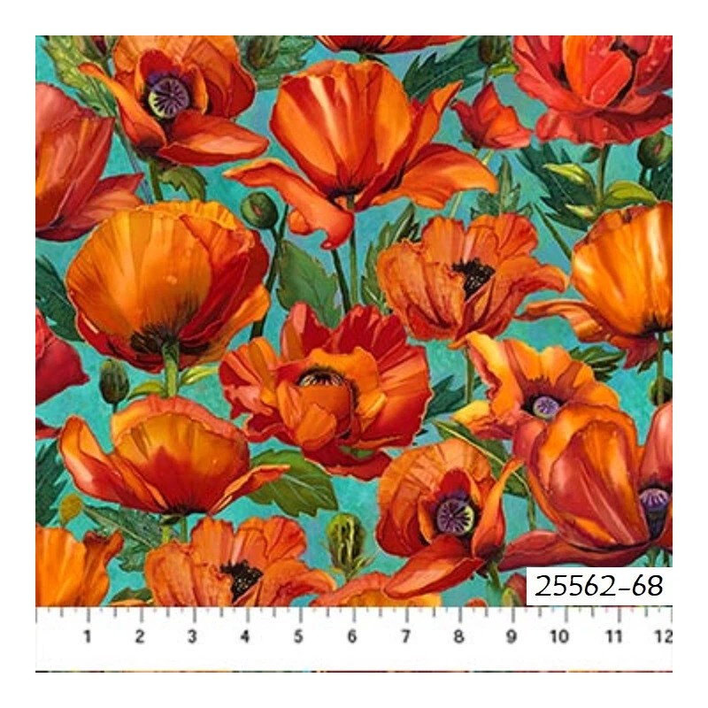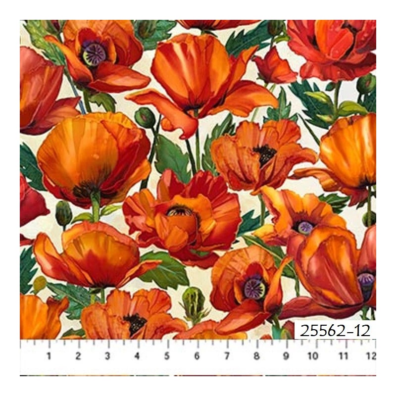Northcott Charisma Poppies Cotton Quilt fabric Northcott 25562-12 Large Poppy on Cream
