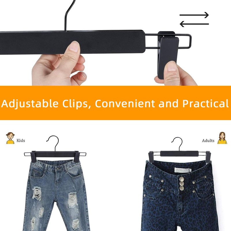 • Multifunctional Pants Hangers with Clips: Our pants clips are not only suitable for pants, but also suitable for all kinds of clothes, such as skirts, trousers, jeans, socks, scarves, towels, all kinds of adult clothing or children's clothing, you can use our pants hangers to your heart's content to keep your pants clean and no wrinkle.