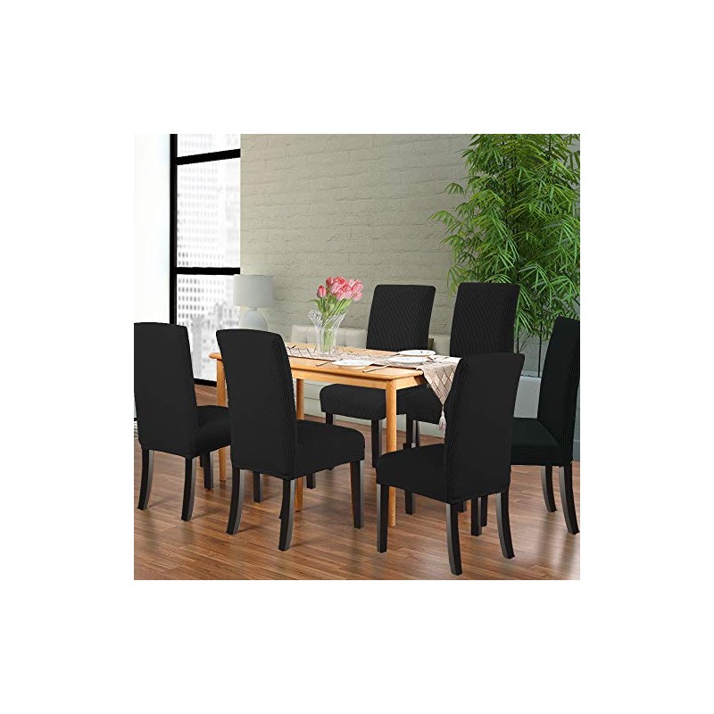 NORTHERN BROTHERS NORTHERN BROTHERS Chair Covers for Dining Room Set of 4, Parson Chair Slipcovers, Stretch Dining Seat Covers, Kitchen Chair Covers, Covers for Chairs, Black
