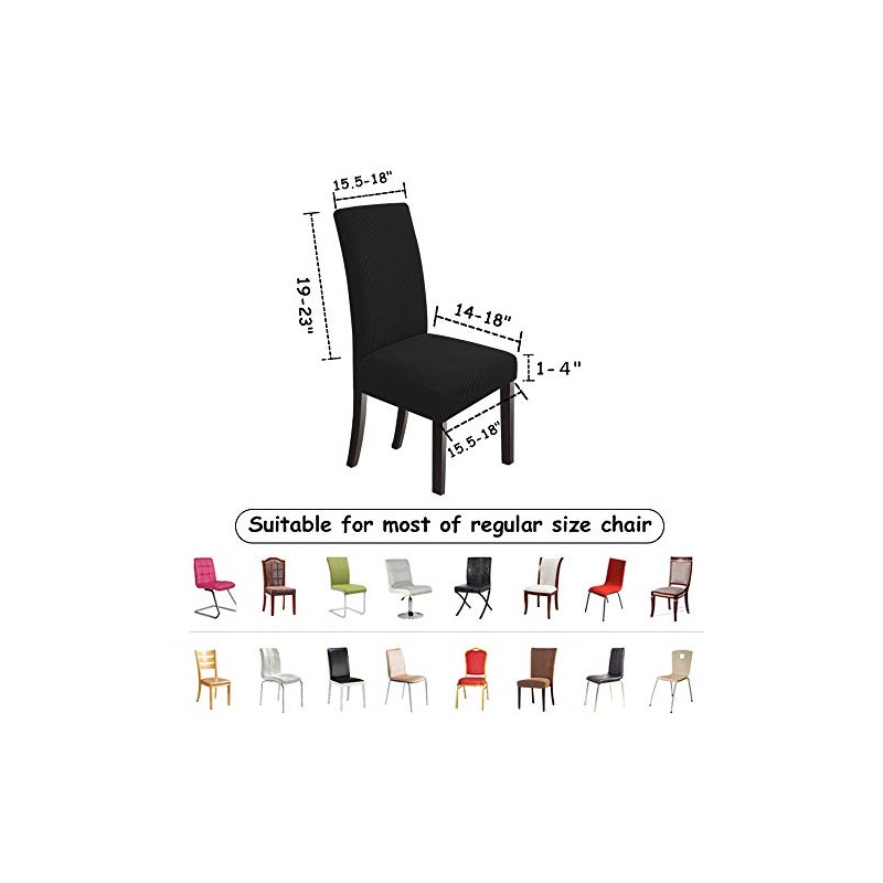 - [ PERFECT SIZE ] Stretch dining chair cover fit for normal and high back parson chair. Chair-back height 19-23' and chair-back width 15.5-18'. Chair seat width 15.5-18' and length 14-18' and thickness 1-4'. Kindly measure before ordering.
