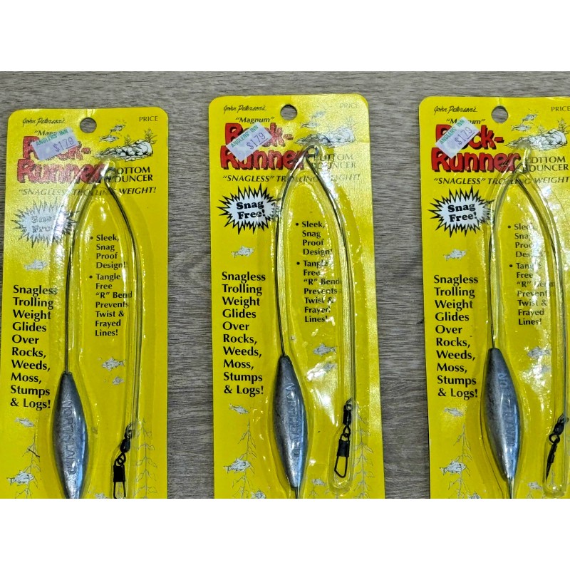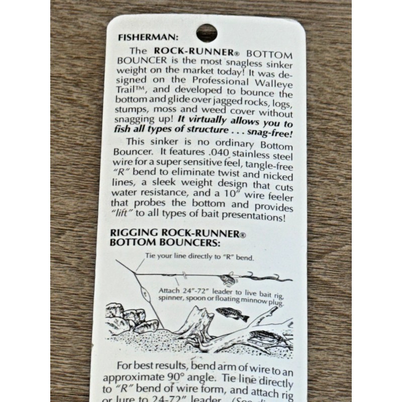 This listing is for three (3) brand new, factory-sealed Northland Fishing Tackle Rock-Runner Magnum Bottom Bouncers (Model RB10). Each weighs 2 ounces.