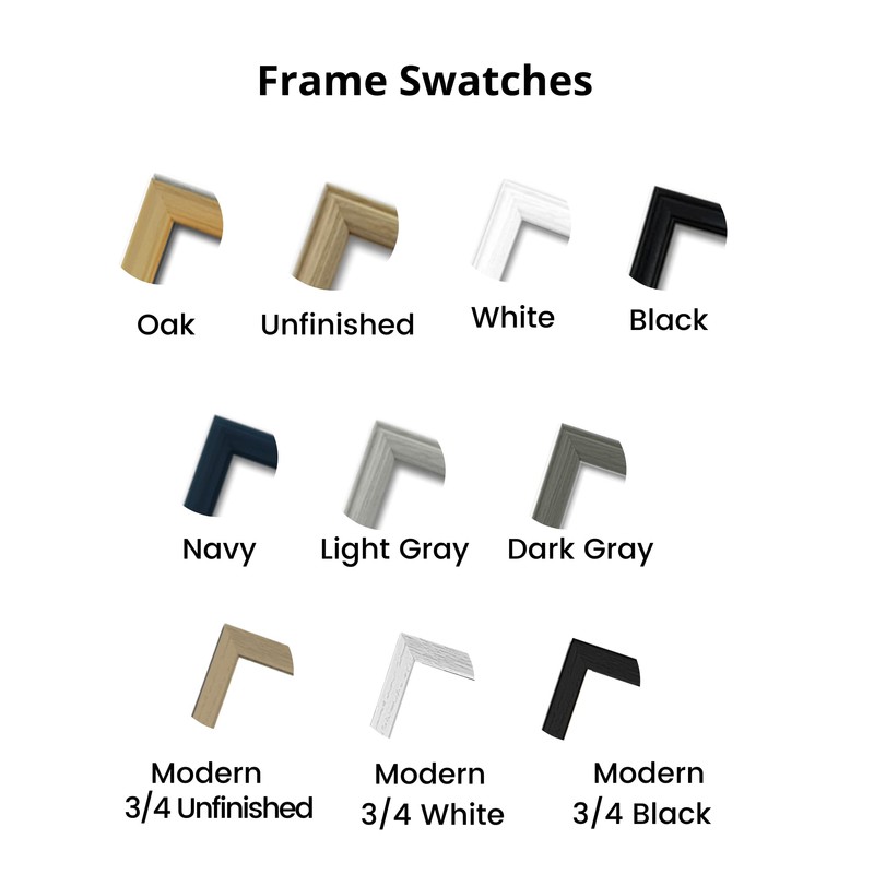 - PERSONALIZE THE STYLE TO MATCH YOUR DECOR - 3 Frame Moldings - Choose from Traditional, Modern and Barnwood mouldings with Multiple Color Options, Frames and Mat available in Unfinished, Oak, White, Black, Espresso, Light Gray, Dark Gray, Navy, Aqua and Pink