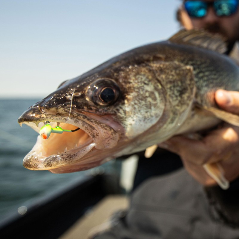 - Compact & Elevated Bait Presentation: With its stand-up head design, this jig keeps bait elevated off the bottom, staying in the strike zone longer. The shorter hook shank offers a more compact, lifelike presentation, perfect for triggering walleye strikes in a variety of conditions.