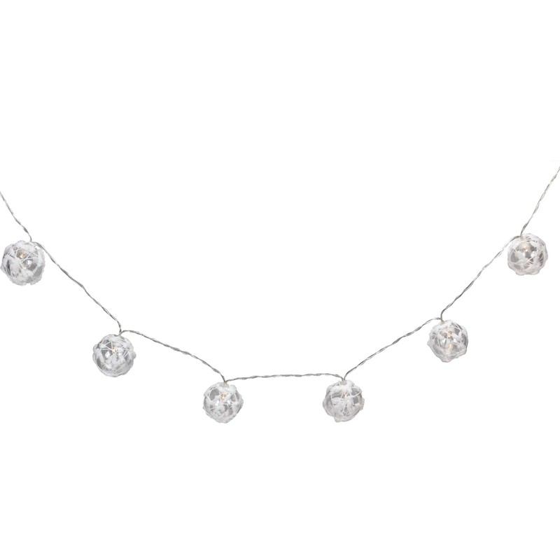 - Lighted string measures 4.75 feet long; balls are 2 inches in diameter
