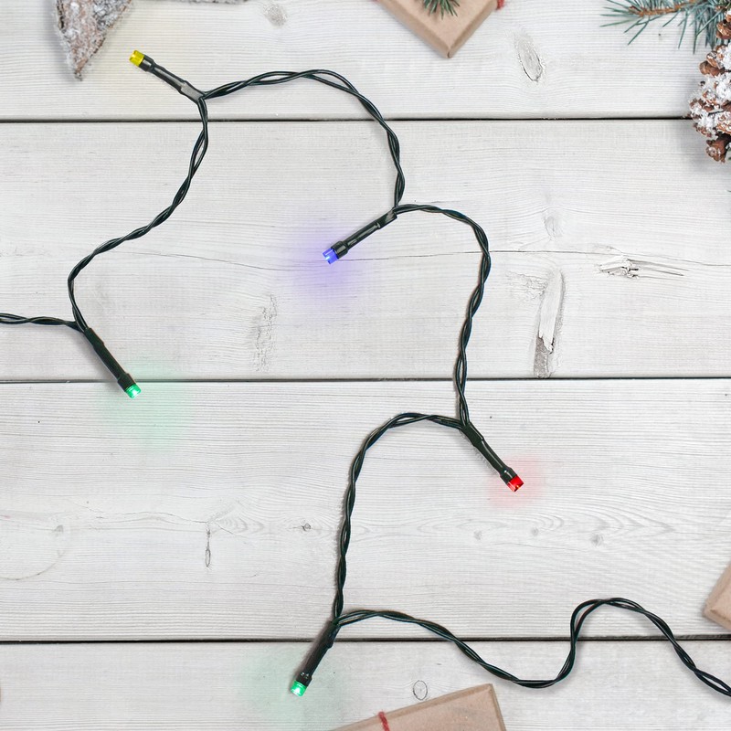 - 10 Count Battery Operated Multi Color Led Christmas Lights; Green Wire