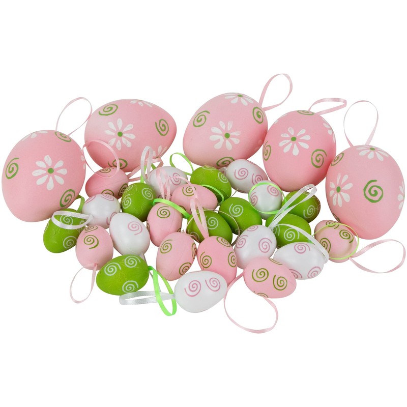 • 29 Count Pastel Pink Green And White Easter Egg Ornaments