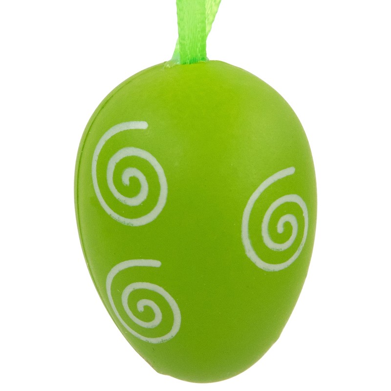These Easter egg ornaments are the perfect addition to your springtime decorating. These durable lightweight eggs are perfect for hanging on your Easter tree, wreaths, or anywhere else you want to add a touch of spring. This set included 5 large eggs and 24 small eggs in green, pink, and white with a swirl or floral design. These eggs can be hung easily by the matching ribbon. Whether you're looking to decorate your home, office, or classroom, these ornaments are a perfect choice. They are sure to brighten up any space and bring joy to all who see them. Order your set today and get ready to add a splash of color and fun to your Easter celebration! Product Features:. Pastel pink, green and white Easter egg ornaments. Eggs have a painted swirl or floral design. Fully dimensional ornaments. Each comes ready-to-hang on a matching ribbon. For indoor or covered outdoor use Dimensions:. Small: 1.5" high x 1.25" diameter. Large: 3.25" high x 2.25" diameter Material(s): plastic Note: set includes 5 large eggs and 24 small eggs pictured