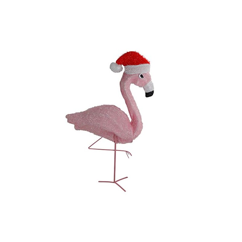 Northlight 32" Pre-Lit Pink Flamingo with Santa Claus Hat Christmas Outdoor Decoration
