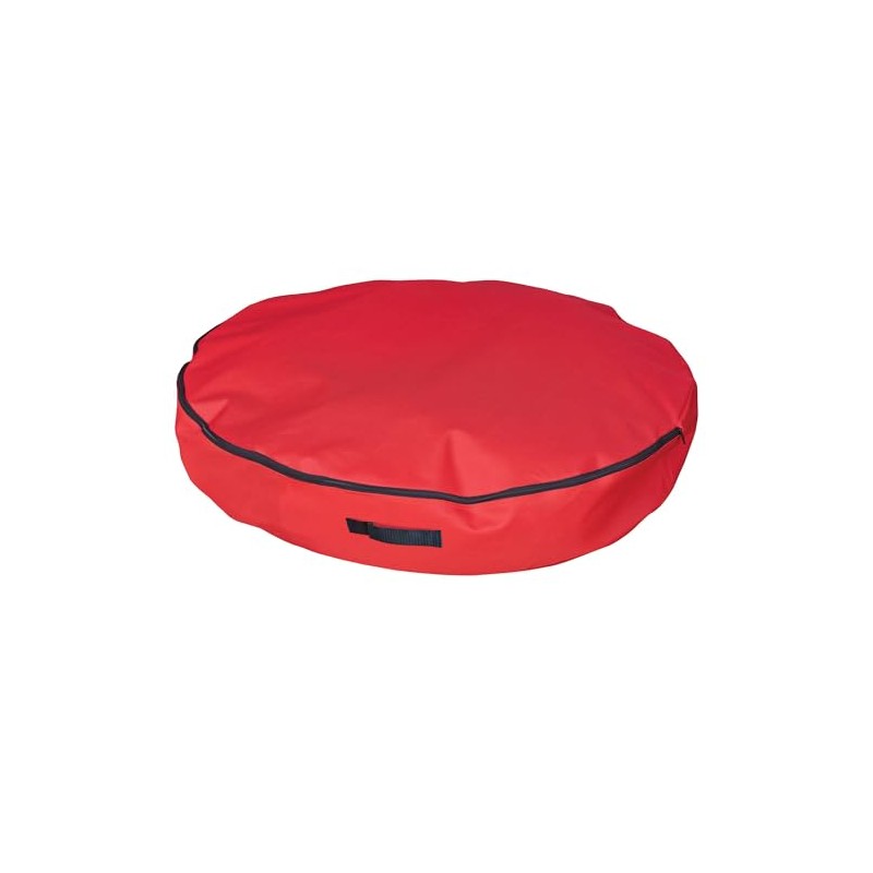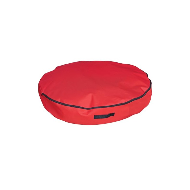 Keep your Christmas wreath safe and secure with Christmas wreath storage bag. This storage bag is designed to protect your wreath from dust, moisture, and damage while in storage. The bright red color makes it easy to spot amongst your other holiday decorations, and the sturdy carrying handles make it easy to transport. With its spacious interior, this storage bag can accommodate wreaths up to 48 inches in diameter, making it the perfect solution for storing your favorite holiday decorations year after year. Give your Christmas wreath the protection it deserves with our premium storage bag. Product Features:. Fits most wreaths up to 48" in diameter. Handles for easy carrying. Made from heavy duty material, resists tearing. Comes with a heavy duty zipper, interior hook and hang tab. For indoor use only Dimensions: 48" diameter x 6" deep. Material(s): polyester