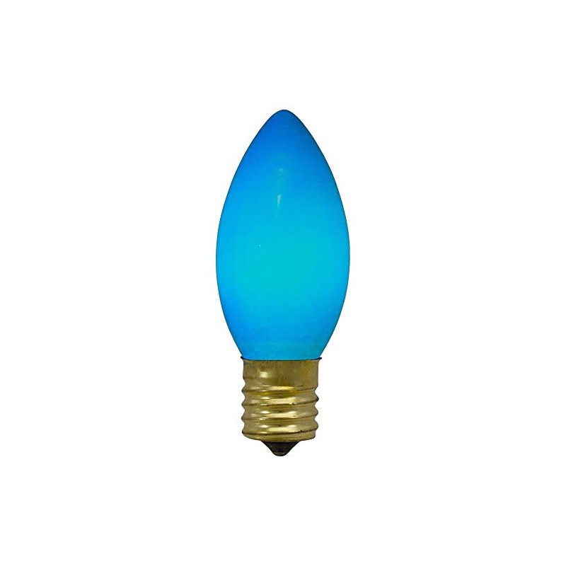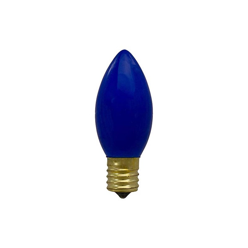 Never find yourself without a replacement bulb when a light goes out; keep yourself prepared this holiday season. No rushing and parading each store until you find the right ones; searching at the last minute can be frustrating. Our opaque replacement bulbs are the perfect secret weapon when that holiday snag hits, be the hero of Christmas. Product Features:. 4-piece Christmas replacement bulbs. Finish: opaque. Color: blue. Bulb size: C9. E17 brass base. 120 volts, 7 watts. Glass bulbs with gold intermediate bases. UL certified and approved for indoor or outdoor use Dimensions: 3" high x 1" diameter Material(s): glass/metal