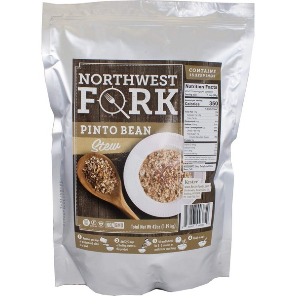 NorthWest Fork Pinto Bean Stew (Gluten-Free, Non-GMO, Kosher, Vegan) 15 Serving Bag - 10+ Year Shelf Life