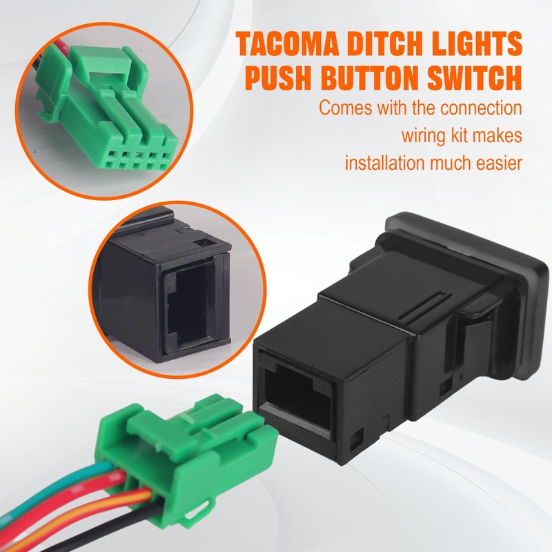 - 【Easy Installation】: Tacoma ditch push button comes with connector wire kit. Rated at 3A 12V, requires relay for higher power loads. Plug-and-play design ensures quick installation.