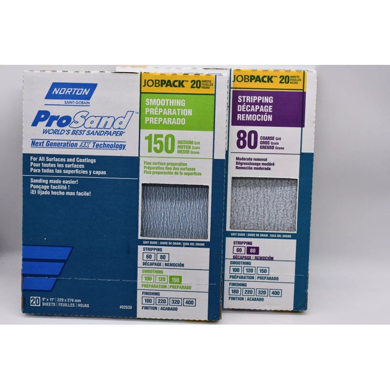 Norton 40 Pack Norton ProSand 9" x 11" Sanding Sheets CHOOSE Coarse Grit - Brand New - 80 C Grit & 150 M Grit
