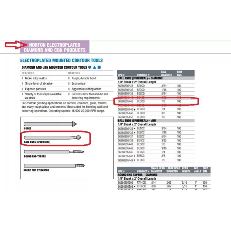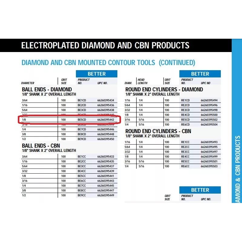Norton Amplex BE5CD 1/8" Ball Electroplated Diamond Contour Tool 100-Grit NEW!