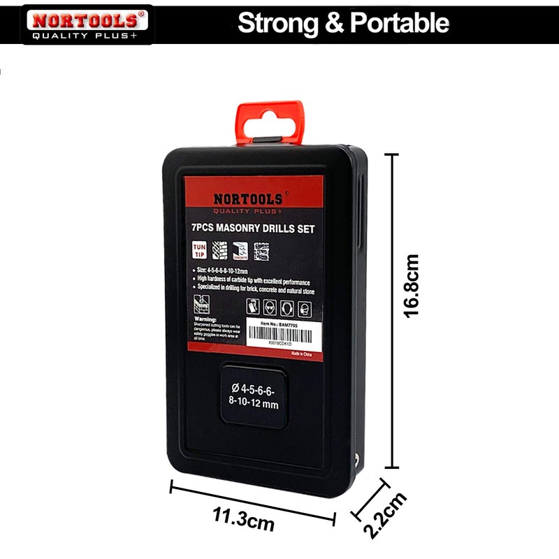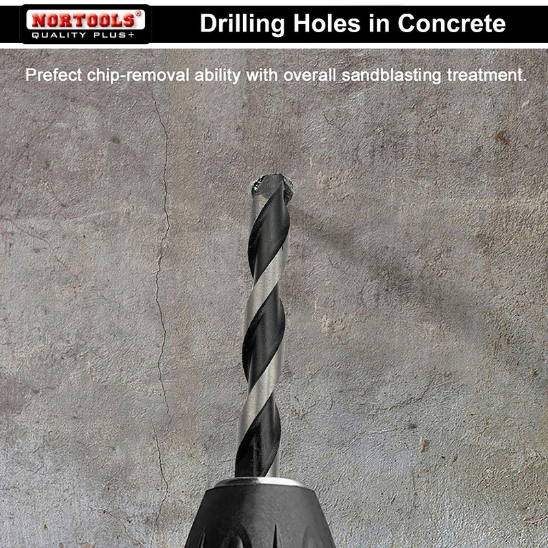 NORTOOLS Concrete Drill Bit Set 7 Pieces Drilling with Carbide Tip for Masonry Concrete Natural Stone Hammer Drills 4-12 mm