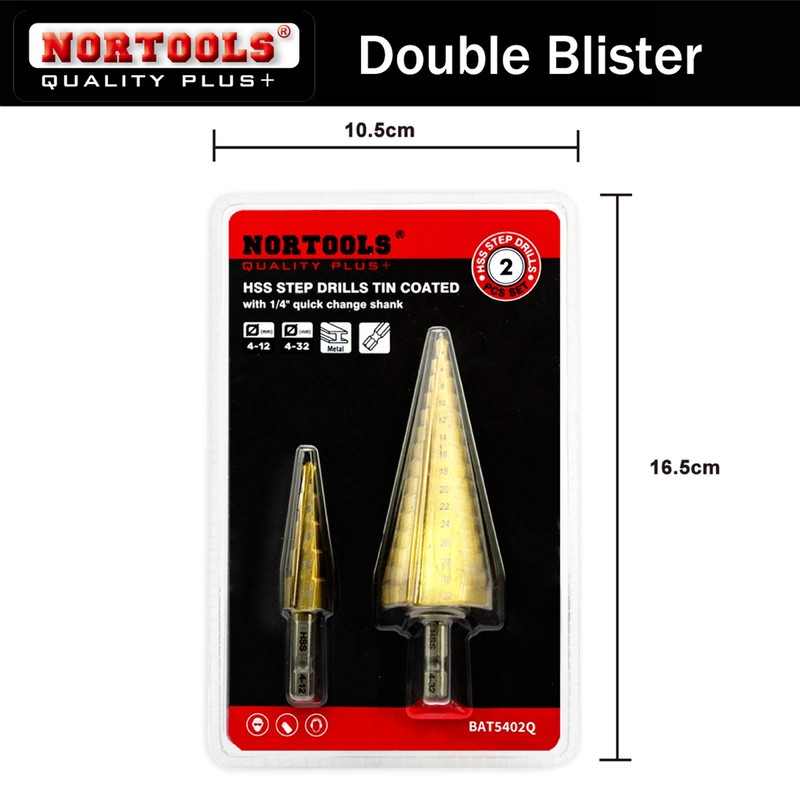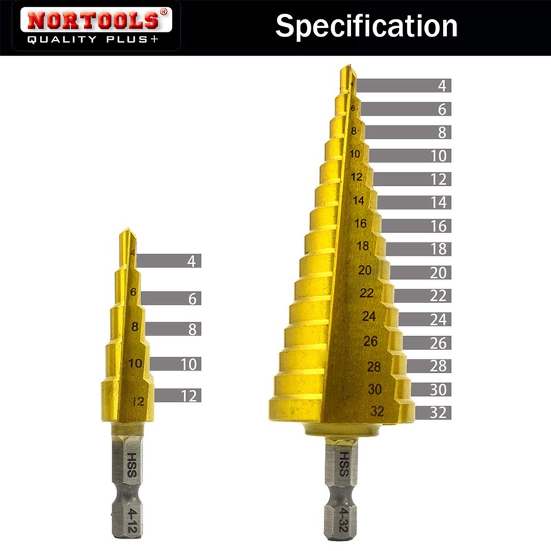 NORTOOLS Step Drill Bit Sets 2 PCS HSS TiN Coated Drills with 1/4 inch Hex Shank Multi-Construction Hole Stepped Up Bits for Machinists Carpenters DIY Lovers Woodworker Hobbyists