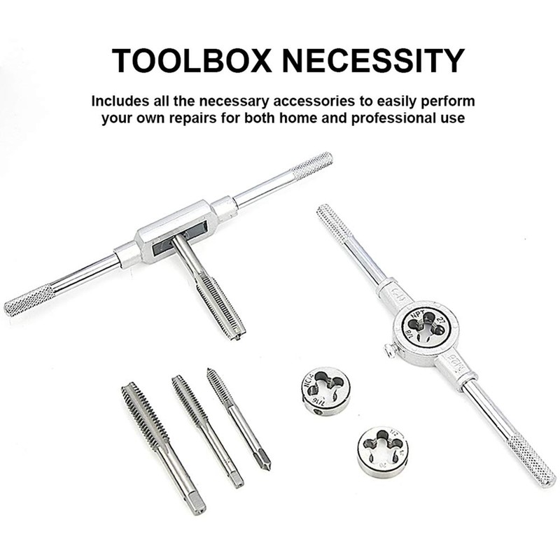 - ☑TAPERED TEETH DESIGN: Tapered coarse and fine taps and dies start threading more easily and smoothly, and prevent over threading.