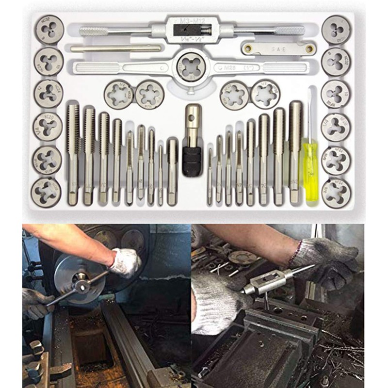 - VERSATILITY AND WIDE APPLICATION: Perfect to create new threads or repair damaged threads on plastic, aluminium... a good tool for home, backyard, garage mechanic...also can use them on small engines like: snow blowers, lawn mowers and outboard motors...Our big recommendation is that before you use any tap or die in this set, is to buy a small can of 3-in-one oil for use as a thread cutting oil