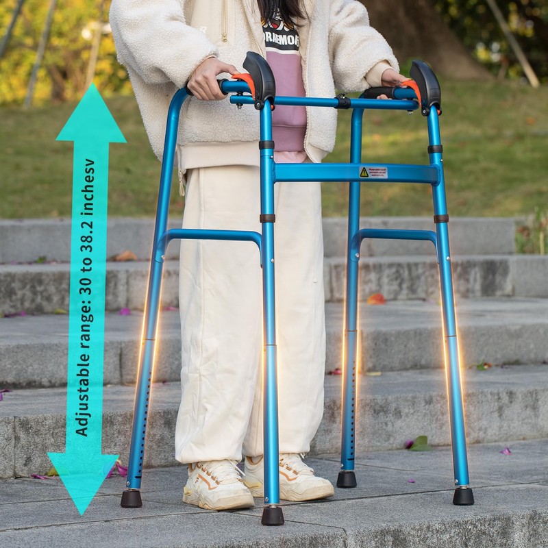 - Customizable and Portable: With 16 height adjustment options spanning over 7.8 inches and an adjustable range of up to 38 inches, this walker accommodates users of different heights, from shorter individuals to taller ones. Its one-click folding mechanism and compact design make it ideal for tight spaces, ensuring effortless transport and immediate use without the need for assembly.