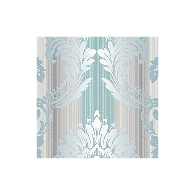 A gradational light reflective damask shines with delight. The damask sits on top of a gradational stripe in this design. The string emboss adds a beautiful sense of texture and opulence.