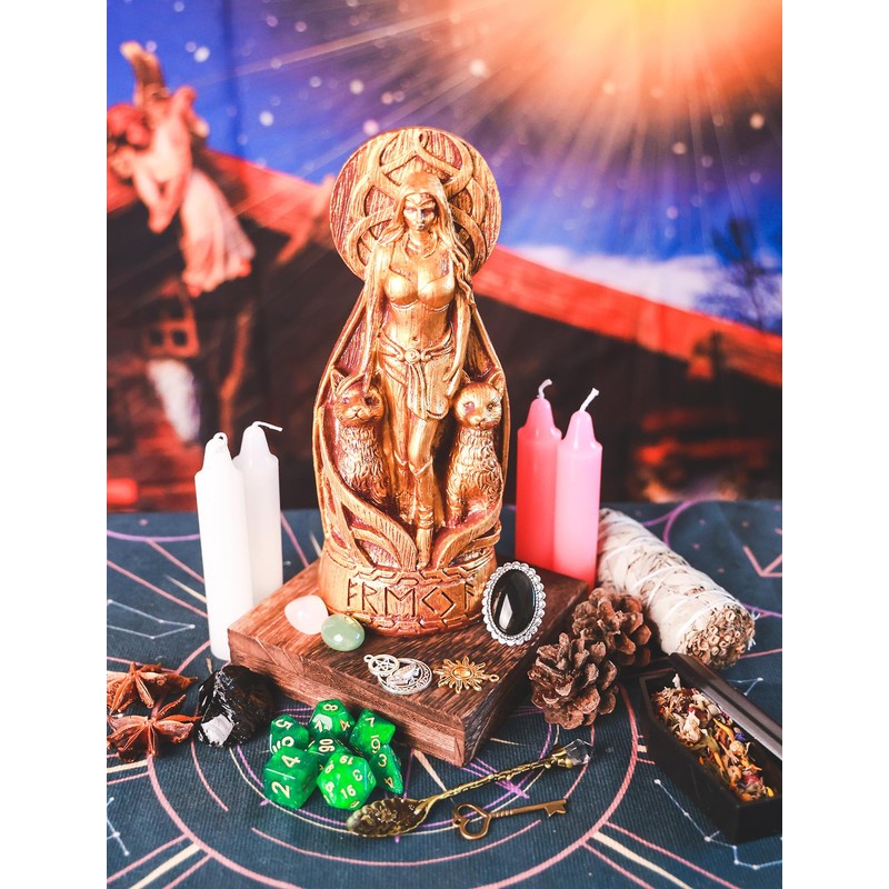 - 【High-Quality Craftsmanship】 Made from premium resin, this Freya statue features fine detailing and durability. Its elegant design and meaningful symbolism make it a standout piece for spiritual rituals, decor, or gifting.