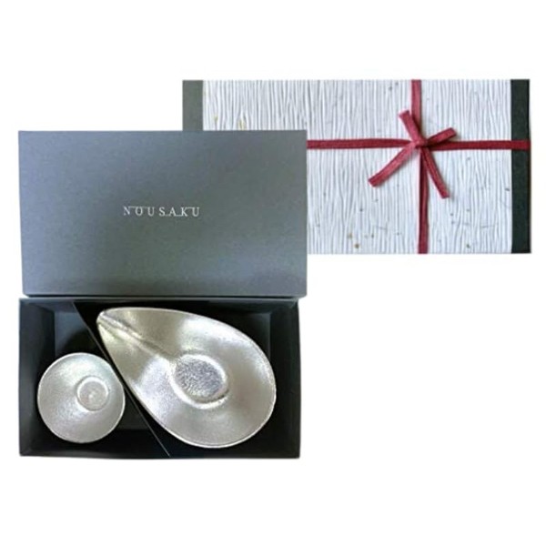 [Nosaku Washi Wrapping] Sake Cup Set, Gui Cup Tin, Single End, Medium (1 Pair), 100% Real Tin