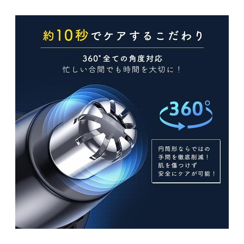 - Powerful power to cut out nose and ear hair. It cuts all hair around 360°, so you can handle it just by touching it, and it is also cylindrical for safety consideration